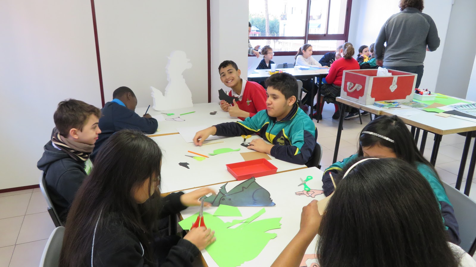 Los alumnos de 6º de primaria realizando actividades en la Biblioteca del Barrio del Carmen. Esta vez a través de los personajes de Tintín.